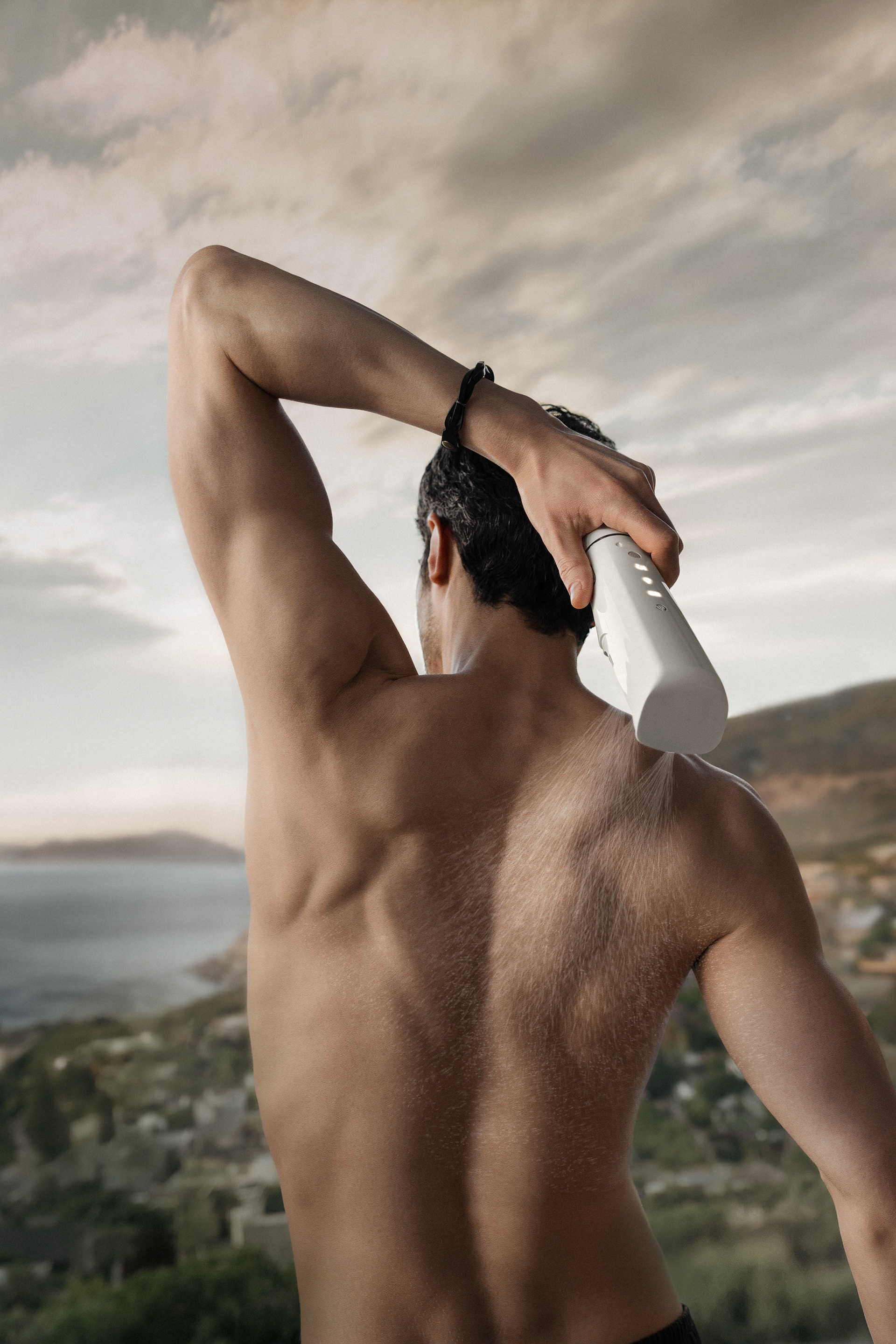 IONIQ Kampagne 2023: Composing von Model mit Background und Himmel, 3D/CGI (Sprayer und Sprühstrahl), Hautretusche, Grading und Look. Lichtreflexe und Schatten setzen. Client: IONIQ/Wagner Group Photos: Leo Rohrsetzer Creative Direction: Nadine Brase Styling: Alexandra Klar