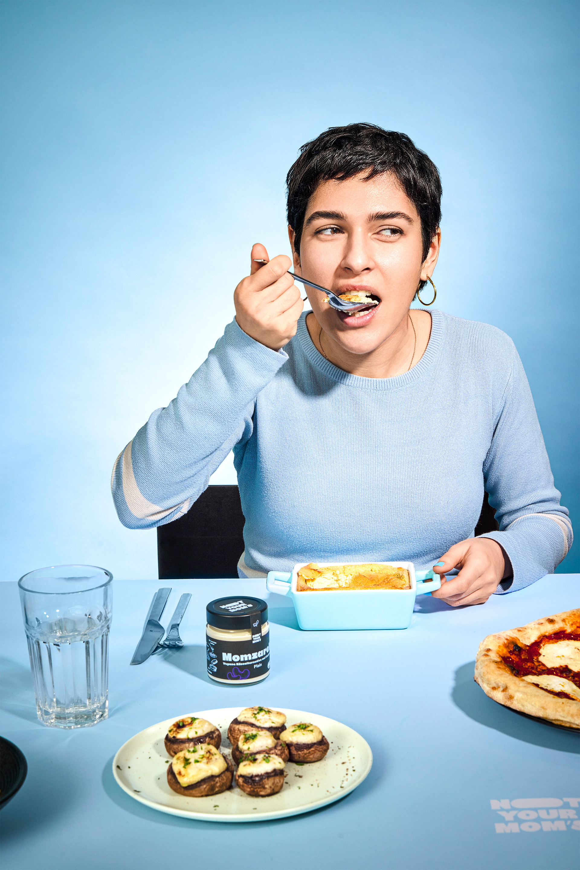 Not Your Mom’s bricht radikal mit dem Standard veganer Ernährung. Das Team um Sahar, Takis und Tomasz verfolgt eine Mission: Pflanzliche Delikatessen, die durch extremen Geschmack überzeugen und so eine loyale Fangemeinde aufbauen. Das Sortiment umfasst innovative Chili-Garlic-Spezialitäten, vegane Mayonnaisen und den „Momzarella“ – eine flüssige Käsealternative auf Cashewbasis. Die Markenidentität ist bewusst unangepasst und setzt auf ein provokantes Storytelling, das die hohe Anziehungskraft ihrer Produkte in den Mittelpunkt stellt. Agency: Sèbastien Coelho Photo: SGR 7 / Markus Finsterwald